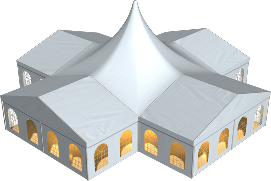 | 篷房连接 | 八边形派对篷房也可被排在各端 |