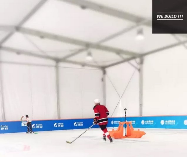 In 2016, the 4th Beijing International Fair for Sports Service Trade will be held in the National Convention Center. Redel's assembly-type stadium together with the ice in the world nearly 30-degree high-temperature outdoor structures to build a 300 square meters of real ice rink, especially eye-catching.