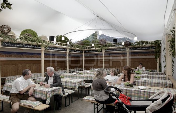 节日帐篷内的空气保持凉爽和清新与屋顶安装的屋顶通风口作用密不可分,确保了室内气氛的愉快。有了这个,RODER提供阿尔高拉尔节日上首次使用的所有帐篷。