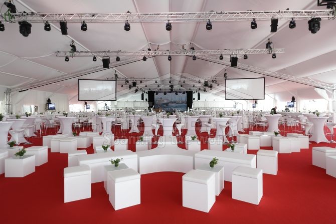 RÖDER为此次庆典提供了15米的12角形大帐篷,其展开覆盖面积可达50米。另外,还有一系列小型帐篷供宾客聚会及饮食。