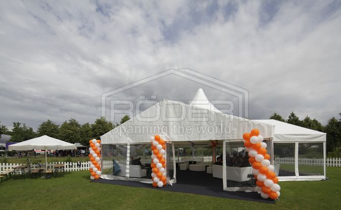 RODER提供了一个112Eck 30M大帐篷和一个大型的TERZ8M派对帐篷给这次活动,TERZ8M派对帐篷在白天是一个评审席,在晚上转换成一个的休息室。此外,12个5米的派对帐篷是适合在各运动领域使用。