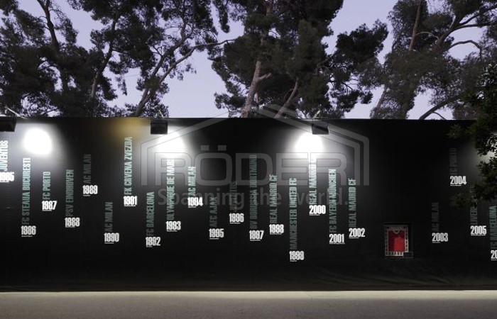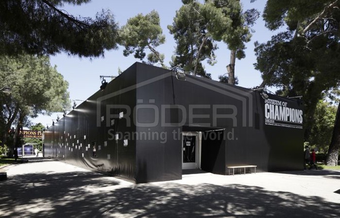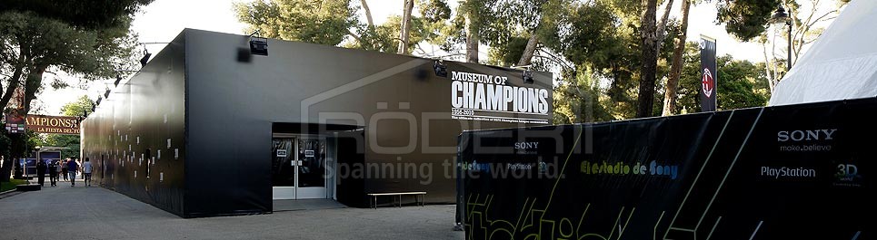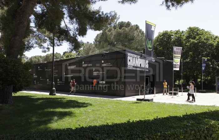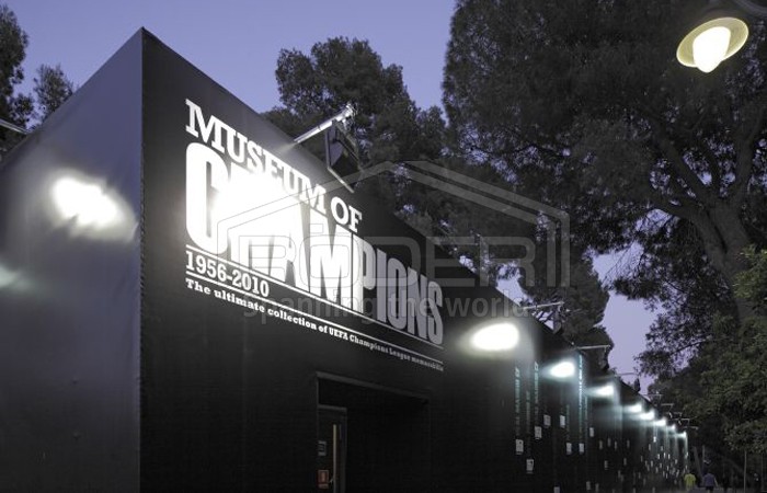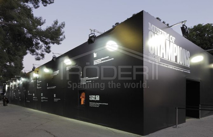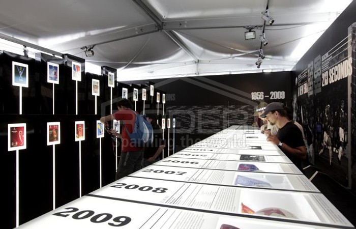 一个瑞德尔10 x 40 米Solution篷房被用作博物馆和展示场地。整个篷房在装饰后形成了一个巨大的4米高的黑色立方体场馆。所有图案和内部的设计都是由英国的国际创意机构designwerk设计完成的。