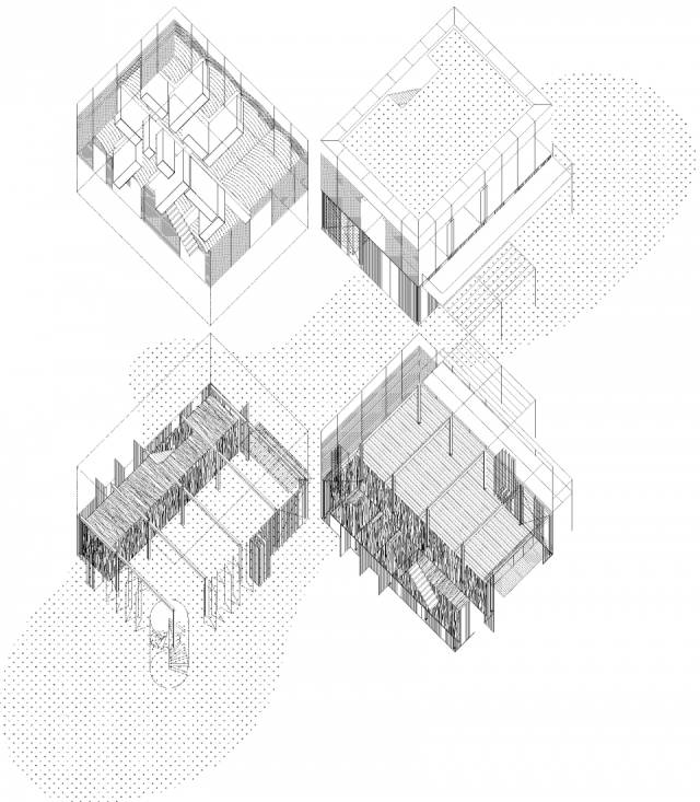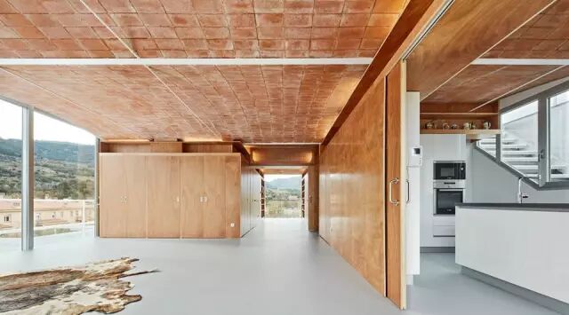 业主一家想要在Alforja镇边界的榛树林中建一个Catalan民族传统的双层乡村住宅:一层用于夏季生活,二层用于冬季生活。这是一个有着极端气候的乡村小城,比el Camp的其他地区都要寒冷多风。 我们调查了当地的建筑结构,研究了季节性变化的膜结构在一天中随天气的变化,从周围邻居的匿名访查中获取经验,最后我们找到了Catalan传统民族建筑与农储仓库的交叉点,建造了一个开放的可以适应不同需求而变化的房子。兼合复古和创新:我们使用了快要被忘记的当地的建造技术,改造了从远处运来的工业化生产的构建,使整个房子可以在12个月内完工。而如果选择其他的建造方,这个过程可能放慢4个月到半年。也因此为业主节省了30%的银行贷款。为了保证房子的质量,我们从根本上探讨了对风险和不确定性的管理,对困难的讨论变成建造一个更便宜更好的房子的契机,拼接的想法也由此而生。