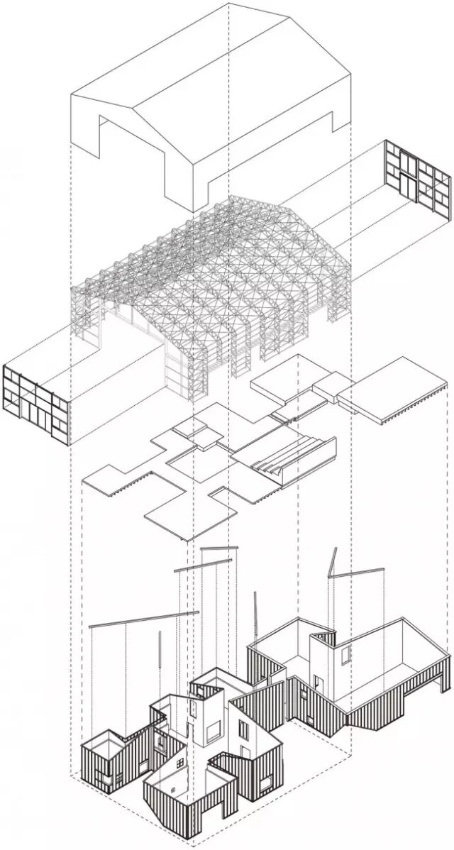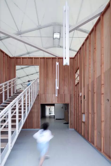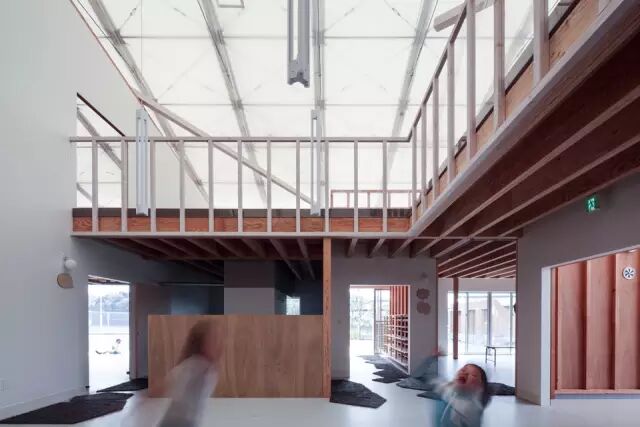 位于千叶市原市一所幼儿园进行了扩建设计。扩建后的建筑将成为服务于儿童、青少年以及他们家人的社区中心。常用于仓储建筑的巨大预制帐篷笼罩着建筑,为儿童们提供了一片在风雨中仍可肆意奔跑的场地,同时也呼应着曾耸立在此的仓库建筑。交错拼接的木墙围合出无数块小场地,供孩子们嬉戏玩耍。墙体的前侧与后侧、以及支撑结构的节点都毫无保留的暴露在孩子们的眼前,激发着孩子对建筑的理解和想象。