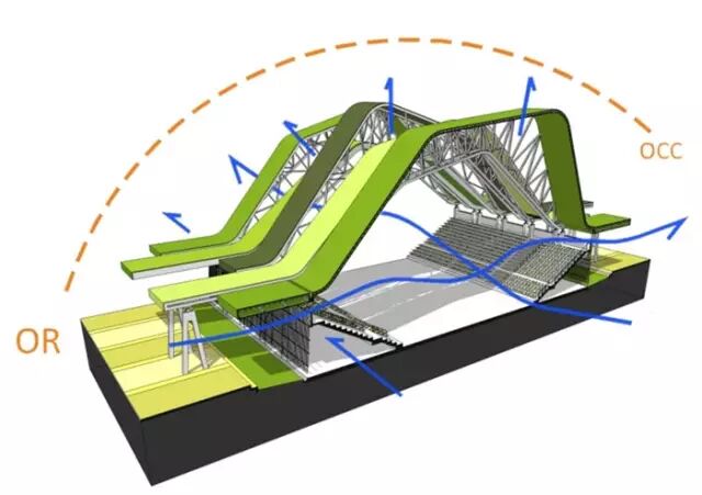 间无缝连接,组成室外运动场所,半室内运动场所,室内运动场所。