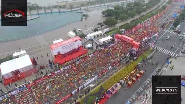 2016南昌国际马拉松由中国田径协会、江西省体育局、南昌市人民政府主办,南昌市体育局承办,并由瑞德尔提供所有赛事装配式建筑及其他配套设施。赛事共设置三个项目,分别为马拉松(42.195公里)3000人、半程马拉松(21.0975公里)5000人,迷你马拉松(5公里)7000人,赛事总规模为1.5万人。有裁判员、公安干警、医务人员、新闻媒体记者、赛事工作人员和志愿者等上万人参与赛事服务。需要在秋水广场,八一体育中心,半程终点,八一广场等多个赛事点搭建可装配式建筑体,并适合不同场地的地基,场地面积和气候,风力等要求,瑞德尔装配式建筑为南昌国际马拉松提供了多赛点新闻中心,多赛点医疗安保和综合的指挥中心,多个功能性休息区,媒体接待区,物资发放区,跑者服务区等多样式多赛点功能性建筑,为赛事提供了极大的便利和安全。赛事结束后,瑞德尔装配式建筑系统可全部拆除二次使用,搭建和拆卸不产生建筑垃圾,是绿色可持续的装配式移动建筑体系。