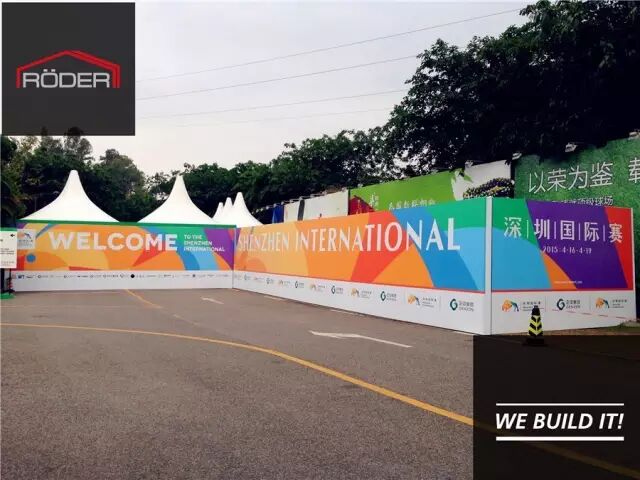 让我们把时间倒回到十个月前,2016年的深圳国际赛可谓 “跌宕起伏”:因为天气原因,4轮比赛历时5天,经历9次暂停。若干突发状况的出现和客户需求的变更,对瑞德尔中国的建筑而言是反应和技术的挑战,从业务经理、现场跟单维护、现场施工搭建到后台设计,物控,仓库分配到运输等团队都带来了不小的考验。